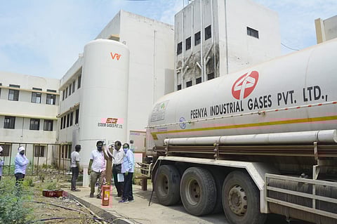 हिंगोली : येथील जिल्हा शासकीय रुग्णालयात ऑक्सीजनचा तुटवडा लक्षात घेऊन जिल्हाधिकारी रुचेश जयवंशी यांनी तातडीने बाहेर राज्यात संपर्क साधून एक ऑक्सिजन टँकर कर्नाटकामधून उपलब्ध केला आहे. गुरुवारी (ता. २२) सकाळी हा टँकर उपलब्ध झाल्याने ऑक्सीजनवर असलेल्या रुग्णांना व त्याच्या नातेवाईकाना दिलासा मिळाला आहे.