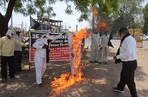 परभणी ः शेतकरी विरोधी कायदे रद्द करण्याच्या मागणीसाठी शेतकऱ्यांनी दिल्लीच्या वेशीवर सुरु केलेल्या आंदोलनास बुधवारी ( ता. 26) मे सहा महिने पूर्ण होत आहेत. केंद्र सरकारच्यावतीने शेतकरी आंदोलनाची उपेक्षा केली जात आहे. त्याच प्रमाणे ३८ कामगार हक्काचे कायदे मोडीत काढून कामगार वर्गावर कुऱ्हाड चालविली आहे. कोरोना महामारीचा गैरफायदा घेत कामगार व शेतकऱ्यावर अन्यायकारक कायदे लादले जात आहेत असे आरोप करत भारतीय कम्युनिष्ट पक्षाच्या नेतृत्वाखाली परभणीत करण्यात आलेल्या आंदोलना दरम्यान पंतप्रधान नरेंद्र मोदी यांच्या पुतळ्याचे दहन करण्यात आले.