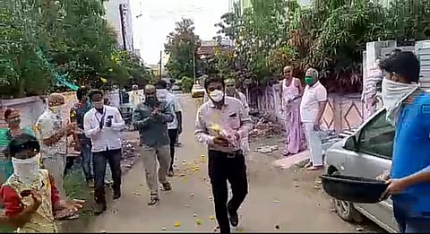 परभणी : शहरातील शिवराम नगर भागात राहणारे डॉक्टर विशाल पवार हे गेल्या तीन महिन्यापासून परभणीच्या जिल्हा शासकीय रुग्णालयात कोविड१९ केंद्रावर रुग्णांची सेवा करत आहेत. मंगळवारी डॉक्टर विशाल दररोज प्रमाणे आपल्या कर्तव्यावर जात असताना शिवराम नगर परिसरातील नागरिकांनी त्यांच्या घराबाहेर जमून व कॉलनीत रांगेत उभे राहून त्यांचे स्वागत केले. कॉलनी वासियांनी अचानक केलेल्या या स्वागतामुळे डॉक्टर विशाल काहीकाळ भारावून गेले.