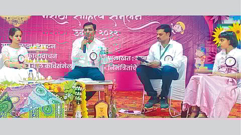 अखिल भारतीय मराठी साहित्य संमेलनातील बालमेळाव्यात शनिवारी (ता.२३) तहसीलदार तथा साहित्य अकादमी पुरस्कार विजेते बालसाहित्यिक आबा महाजन यांची मुलाखत पार पडली.