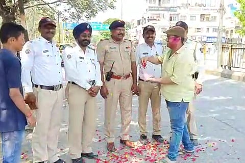 पोलीस दलाने उधळला कर्तव्याचा रंग...