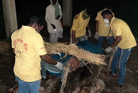 उदगीर (जि.लातूर) : चोंडी (ता.उदगीर) येथील एका पंचावन्न वर्षीय महिलेचा आकस्मिक मृत्यू झाला. कोरोनाच्या दहशतीने अख्या गावातील एकही जण अंत्यविधीसाठी पुढे आला नाही. या महिलेच्या पतीने शहरातील रोटी कपडा बँकेला मदत मागितली. या बँकेच्या टिमने गावात जाऊन अंत्यसंस्कार केल्याने या कुटुंबाला धीर आला. अख्ख्या गावाने डावललेल्या महिलेच्या मृतदेहावर रोटी कपडा बँकेने अंत्यसंस्कार करून आधार दिला आहे.