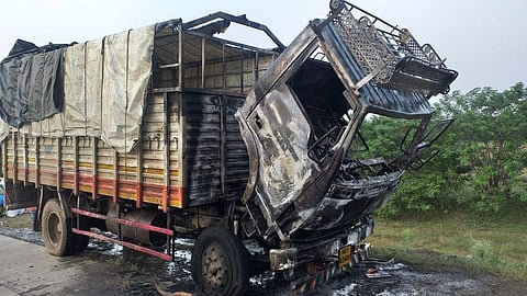 पाटोदा (बीड) : आपल्या विविध मागण्यांसाठी मागील काही दिवसांपासून संपूर्ण राज्यात उसतोड मजूर, वाहतूकदार यांचे आंदोलन सुरु आहे. आता या आंदोलनाला हिंसक वळण लागत आहे. काही दिवसांपूर्वीच आष्टी तालुक्यात उसतोड मजुरांना घेऊन जाणाऱ्या टेम्पोला जाळल्याची घटना ताजी असतानाच शुक्रवारी दुपारी पुसद तालुक्यातील मजुरांना घेऊन जामखेडकडे छुप्या मार्गाने निघालेल्या टेम्पोला पाटोदा नजीक असलेल्या अनपटवाडी येथे अज्ञात लोकांनी अडवून मजुरांना धमकावून खाली उतरवले व चालकाला मारहाण करून टेम्पोला आग लावल्याची घटना घडली आहे.