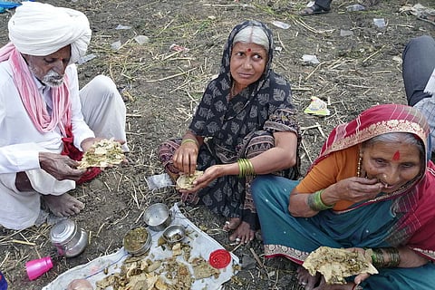 तामसा, (ता. हदगाव, जि. नांदेड) ः तामसा येथील बारालिंग मंदिरात आगळ्यावेगळ्या भाजी -भाकर पंगतीला हजारो भाविकांनी हजेरी लावून मंदिर परिसर अध्यात्म व धार्मिक वातावरणात फुलल्याचे चित्र निर्माण झाले होते. येथील मंदिरातील ‘श्री’चा गाभारा विद्युत रोषणाई व फुलांनी आकर्षकरीत्या सजविला होता.