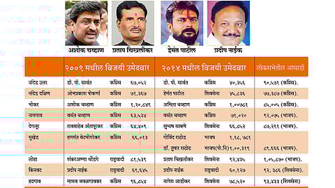 जिल्ह्यात नऊ विधानसभा मतदारसंघ असून, २०१४ च्या निवडणुकीत आघाडी किंवा युती नव्हती. सगळेच स्वबळावर लढले होते. त्यात शिवसेनेला चार (नांदेड दक्षिण, हदगाव, देगलूर आणि लोहा), काँग्रेसला तीन (नांदेड उत्तर, भोकर आणि नायगाव) आणि राष्ट्रवादी (किनवट) आणि भारतीय जनता पक्ष (मुखेड) यांना प्रत्येकी एक जागा मिळाली होती. २०१४ च्या नांदेड लोकसभा निवडणुकीत काँग्रेसचे नेते माजी मुख्यमंत्री अशोक चव्हाण मोदी लाटेतही ८१ हजार मतांनी निवडून आले. मात्र, २०१९ च्या निवडणुकीत त्यांचा पराभव झाला. भाजपचे प्रताप पाटील चिखलीकर ४० हजार मतांनी निवडून आले. त्याचबरोबर हिंगोली लोकसभा मतदारसंघातून शिवसेनेचे हेमंत पाटील, तर लातूरमधून भाजपचे सुधाकर शृंगारे निवडून आले.