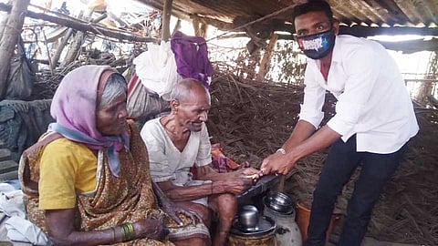 नांदेड : जगभरात थैमान माजविलेल्या कोरोनाला हरविण्यासाठी नांदेड डाक टीम सर्व समांतर अंतर ठेवून व तोंडावर मास्क लावून आणि सोबत हँडवॉश ठेऊन नियमांचे पालन करीत देश सेवा करीत असल्याचे चित्र मोठ्या प्रमाणात पहावयास मिळत आहे. अशीच एक घटना मनाला चटका लावणारी. दोन्ही डोळ्यांनी अंध असलेल्या आदिवासी भागातील किनवट तालुक्यातील बोधडी येथे निराधार लाभार्थी पुंडलिक तुकाराम कांबळे व त्यांची पत्नी भागाबाई कांबळे यांना त्यांच्या घरी जावून निराधार योजनेचे पैसे दिले. यावेळी भागाबाई कांबळे यांनी आम्ही तर जन्मत:च लॉकडाऊन असल्याच्या काळीज पिळवटून टाकणारी भावना व्यक्त केली.