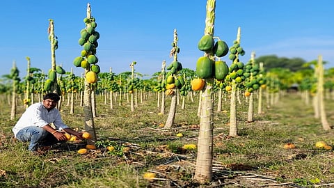 प्रथमतः त्यांनी तीन वर्षांपासून आपल्या शेतात अधिक पाणी घेणारे ऊसाची लागवड पूर्णपणे बंद केले आहे. त्यांच्याकडे बेचाळीस एकर शेती असून सध्या ड्रॅगन फ्रुट अर्धा एकर, लिंबू दोन एकर, पेरु चार एकर, सीताफळ सात एकर व पपई चार एकर आहे. कमी पाण्यावर कष्ट व योग्य नियोजन करीत बागा टिकून ठेवले आहेत. दहा महिन्यांखाली लागवड केलेली ही चार एकर पपई तैवान ७८० या जातीचे आहे. रोप लावणे, खत- औषध फवारणी, मजूर, मशागत यासाठी जवळपास आतापर्यंत तीन लाख रुपये खर्च आला आहे.