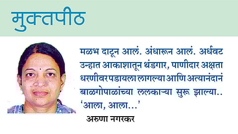 मळभ दाटून आलं. अंधारून आलं. अर्धवट उन्हात आकाशातून थंडगार, पाणीदार अक्षता धरणीवर पडायला लागल्या आणि अत्यानंदानं बाळगोपाळांच्या ललकाऱ्या सुरू झाल्या.. ‘आला, आला, वळवाचा पाऊस आला.’