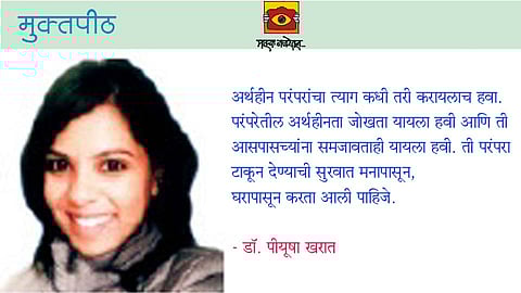 अर्थहीन परंपरांचा त्याग कधी तरी करायलाच हवा. परंपरेतील अर्थहीनता जोखता यायला हवी आणि ती आसपासच्यांना समजावताही यायला हवी. ती परंपरा टाकून देण्याची सुरवात मनापासून, घरापासून करता आली पाहिजे.