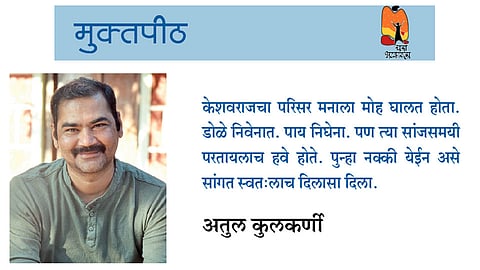 प्रवेशद्वाराशीच एक उंच वृक्ष उभा ठाकला होता. वाकून आत गेल्यावर उजवीकडे दिसले गोमुख. शिणलेल्या जीवाला पाणी बघून हायसे वाटले. हे पाणी या भल्या थोरल्या डोंगराच्या माथ्यावरून येते. थंड, सुखकारक. डावीकडे पडवीवजा मंदिरात गणपतीबाप्पा विसावले आहेत. डावीकडे मुख्य मंदिर. सभामंडप, गाभारा आणि आत लामणदिव्यांच्या उजेडात सहजी न दिसणारा काळाकुट्ट केशवराज. त्यादिवशी त्याने शुभ्र वस्त्र परिधान केली होती. चांदीचे डोळे, बहुदा कुणी वाहिले असतील. हा केशवराज आपला वाटतो. शांत, मोकळ्या गाभाऱ्यात सहज त्याला मनातले सांगावे. तो ऐकेल, प्रतिसाद देईल असे वाटते. सवयीने मंदिरात थोडावेळ विसावलो. ‘शांताकारं भुजगशयनं’ म्हणतानाच बकुळीचा वास आला. मन वेडावले. स्तोत्र म्हणून उठलो. उजवीकडे बाग आहे छोटेखानी. खरें तर इथे सगळीकडे झाडेच झाडे आहेत, जंगलच. तरी इथे ही बाग तयार केली आहे कुणीतरी. तर बकुळीचा शोध घेऊ लागलो, पण कुठे दिसेना. झाडांमधील आधीच असलेला गडदपणा अजूनच घट्ट व्हायच्या वाटेला लागला. या सुवासाने वेड लावले होते आणि ती बकुळ काही सामोरी होत नव्हती. शेवटी नाद सोडला. परतायला हवे होते. कारण रस्ता पायाखालचा नव्हता. अंधार पडला असता तर मुक्कामी पोचायला अंमळ त्रास झाला असता. आधीच एक तर गूढता होती इथल्या वातावरणात आणि सोबतीला कुणी नव्हते. पुन्हा केशवराजला नमस्कार केला आणि निघालो.