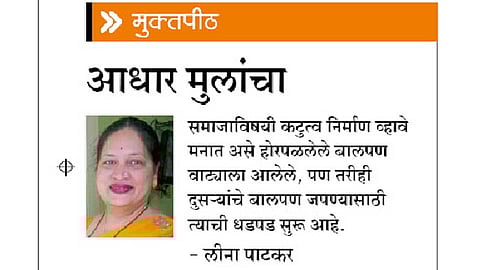 काही दिवसांपूर्वी विरार जवळच्या भाताने गावात असलेल्या "साई आधार'ची माहिती मिळाली. वह्या, पुस्तके, पेन, पेन्सील, फळा, खडू अशा वस्तू, थोडा खाऊ, धान्य घेण्यासाठी काही रक्कम घेऊन आम्ही पाच मैत्रिणी पोचलो. आमच्या गप्पा सुरू झाल्या आणि जाणवले की आपण देवमाणसांना भेटलो. "साई आधार'चे विशाल परुळेकर हे मूळचे कोकणातल्या पाट-परुळ्याचे. त्यांच्या डोक्यावरचे आई-वडिलांचे छत्र खूप लवकर हरवले. अवघे सात-आठ वर्षांचे असताना एका साई मंदिराच्या बाहेर भीक मागून जगू लागले.