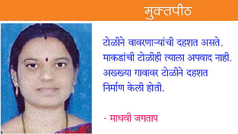 टोळीने वावरणाऱ्यांची दहशत असते. माकडांची टोळीही त्याला अपवाद नाही. अख्ख्या गावावर टोळीने दहशत निर्माण केली होती.