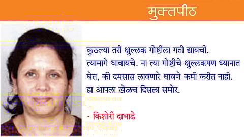 कुठल्या तरी क्षुल्लक गोष्टीला गती द्यायची. त्यामागे धावायचे. ना त्या गोष्टीचे क्षुल्लकपण ध्यानात घेत, की दमसास लावणारे धावणे कमी करीत नाही. हा आपला खेळच दिसला समोर.