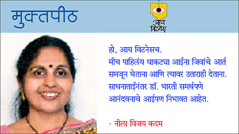 हो, आय विटनेसच. मीच पाहिलंय धाकट्या आईंना जिवांचे आर्त समजून घेताना आणि त्यावर उताराही देताना. साधनाताईंनंतर डॉ. भारती समर्थपणे आनंदवनाचे आईपण निभावत आहेत.