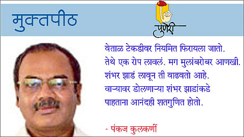 वेताळ टेकडीवर नियमित फिरायला जातो. तेथे एक रोप लावलं. मग मुलांबरोबर आणखी. शंभर झाडं लावून ती वाढवतो आहे. वाऱ्यावर डोलणाऱ्या शंभर झाडांकडे पाहताना आनंदही शतगुणित होतो.