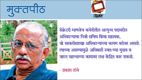 मात्र, खासगी व इतर सरकारी किंवा निमसरकारी कार्यालयांत साहेबांच्या खांद्याला खांदा लावून काम करणारे लघुलेखक, पीए किंवा सेक्रेटरी आपल्या कार्यालयाशी निगडित मोलाची जबाबदारी पार पाडत असतात. पुण्यातील शेकडो विद्यार्थ्यांना इंग्रजी लघुलेखन शिकवणाऱ्या माझ्या वडिलांकडून (जनार्दन गणेश तांबे) लघुलेखन शिकण्याचे भाग्य मलाही लाभले. कार्यालयीन कारकिर्दीच्या सुरवातीचा काही काळ मीही लघुलेखक ते सचिवपदावर होतो. ही पदे सांभाळताना होणारी ओढाताण, करावी लागणारी कसरत व त्या सर्व अनुभवांतून घडणारी वैयक्तिक प्रगती मी व माझ्यासारख्या अनेकांनी अनुभवली असेल. कार्यालय सांभाळण्याचा, संतुलन साधण्याचा, योग्य माणसांना न्याय मिळवून देण्याचा, कामचुकारांना धडा शिकवण्याचा अनुभव सचिवांच्या गाठीशी असतो. बॉस बदली होऊन गेला तरी कार्यालयीन कामकाजातील सातत्य सचिवामुळेच राहते.