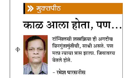 माझे वडील वैद्यकीय सेवेतून निवृत्त झाले होते. त्या काळी मला टॉन्सिलचा त्रास व्हायचा. कोल्हापूरच्या सरकारी दवाखान्यातील घसातज्ज्ञांशी प्राथमिक चर्चा करून टॉन्सिल काढण्याची शस्त्रक्रिया करण्याचे ठरले. ही शस्त्रक्रिया विनागुंतागुंतीची नियमितपणे होणारी साधी सोपी आहे. डॉ. एस. व्ही. गोगटे यांनी शस्त्रक्रिया केल्यानंतर मला एका वॉर्डात दाखल केले. माझे बाबा स्वतःच डॉक्टर असल्याने डॉ. गोगटेंच्या संमतीनेच त्याच दिवशी संध्याकाळी मला घरी सोडले.