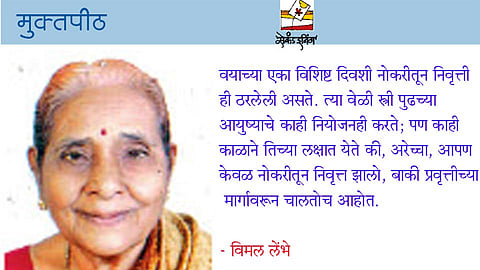 वयाच्या एका विशिष्ट दिवशी नोकरीतून निवृत्ती ही ठरलेली असते. त्या वेळी स्त्री पुढच्या आयुष्याचे काही नियोजनही करते; पण काही काळाने तिच्या लक्षात येते की, अरेच्चा, आपण केवळ नोकरीतून निवृत्त झालो, बाकी प्रवृत्तीच्या मार्गावरून चालतोच आहोत.