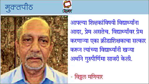 आपल्या शिक्षकांविषयी विद्यार्थ्यांना आदर, प्रेम असतेच. विद्यार्थ्यांवर प्रेम करणाऱ्या एका क्रीडाशिक्षकाचा सत्कार करून त्यांच्या विद्यार्थ्यांनी खऱ्या अर्थाने गुरुपौर्णिमा साजरी केली.