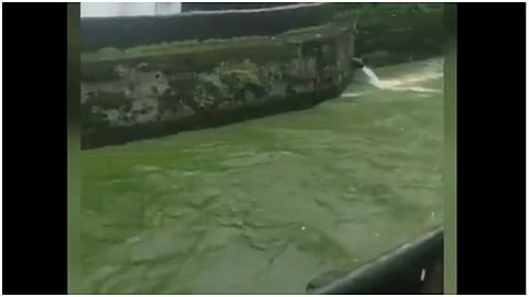 डोंबिवली एमआयडीसीतील रासायनिक कंपन्यांच्या प्रदूषणामुळे यापूर्वी हिरवा, नारंगी पाऊस, त्यानंतर रसायनामुळे गुलाबी, निळे झालेले रस्ते यापूर्वी पाहिले आहेत. सोमवारी पडलेल्या पावसामुळे नाले तुडुंब भरून वाहत असून गांधीनगर येथील नांदीवली नाला चक्क हिरवा झाल्याचे पहायला मिळाले. पावसाचा फायदा घेत कंपन्यांनी आपले रासायनिक सांडपाणी नाल्यात सोडल्याने पूर्ण नाला हिरवा झाला होता.