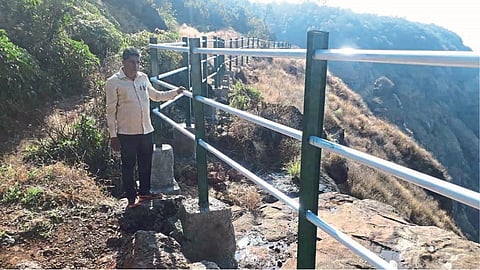 माथेरान (बातमीदार) : येथील बेलवेडीयर पॉईंटला संरक्षक कठडे नव्हते. त्यामुळे तो पर्यटकांसाठी असुरक्षित होता. चार महिन्यांपूर्वी एका पर्यटक महिलेचा या पॉईंटवरून पडून मृत्यू झाला होता. त्यामुळे वन-व्यवस्थापन समितीला जाग आली असून या पॉईंटवर लोखंडी रेलिंग बसवण्यात आले आहे.