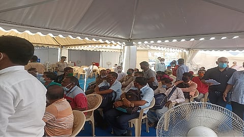 Beneficiaries gathered Goregaon Nesco Jumbo Covid Center get vaccinated