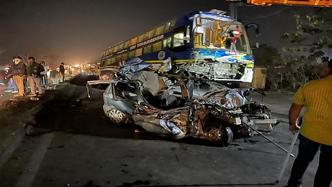 car and bus tragic accident Bhiwandi Four people died
