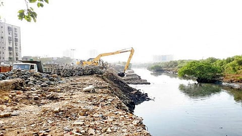 मेट्रो रेल्वे कॉर्पोरेशनकडून मुंबईत मोठ्या प्रमाणात मेट्रोचे काम सुरू आहे. मेट्रो 4 प्रकल्पाअंतर्गत सहार मेट्रो रेल्वेस्थानकाचे बांधकामही अंतिम टप्प्यात आले आहे. जे. कुमार या बड्या ठेकेदाराकडून हे काम सुरू आहे. बांधकाम करताना त्यातून निघणारा राडारोडा या ठेकेदाराकडून सहार जवळील पी ऍण्ड टी नाल्यामध्ये टाकण्यात येत आहे. गेल्या वर्षभरापासून हे काम सुरू असून यामुळे नाल्याच्या प्रवाहात 3 फूट गाळ साचून अडथळा निर्माण झाला आहे.