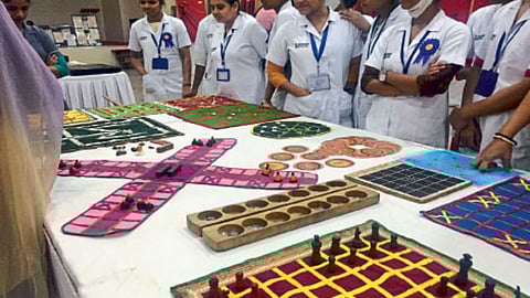 मनोरंजनासोबत युद्धासाठी खेळांचा कसा उपयोग होत होता, याची माहिती खेळ अभ्यासक पंकज भोसले यांनी दिली. दगडावर कोरलेल्या खेळापासून ते अगदी लाकूड, कपडे आदींवर हे खेळ बनवले गेले. मंकला, विमानाम, चतुरंग, अक्स दुता, गंजिफा, कवड्या असे खेळ खेळले जात असत. ते खेळ या प्रदर्शनात मांडण्यात आले आहेत.