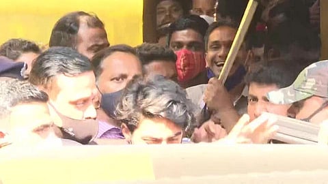 मुंबई: अखेर सुपरस्टार शाहरुख खान (Shahrukh khan) आणि गौरीची 'मन्नत' (Mannat) पूर्ण झाली आहे. तब्बल २७ दिवसानंतर आर्यन खान आर्थररोड कारागृहाबाहेर (Arthurroad jail) आला. आर्यन आलिशान रेंज रोव्हर कारमध्ये बसून 'मन्नत'च्या दिशेने रवाना झाला आहे. कॉर्डेलिया क्रूझ ड्रग्ज प्रकरणात (drug case) अटकेत असलेल्या आर्यनला गुरुवारी संध्याकाळी मुंबई उच्च न्यायालयाने जामीन मंजूर केला होता. अन्य कायदेशीर प्रक्रिया काल वेळेत पूर्ण होऊ शकल्या नाहीत. त्यामुळे आर्यनची काल सुटका होऊ शकली नाही.