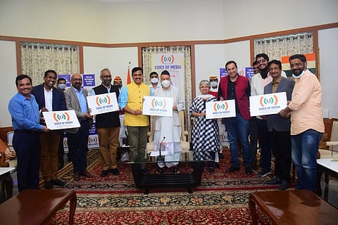 व्हॉईस ऑफ मिडिया’ च्या लोगोचे अनावरण राज्यपाल भगतसिंह कोश्यारी यांच्या हस्ते झाले. यावेळी संस्थापक अध्यक्ष संपादक संदीप काळे, सरचिटणीस जय महाराष्ट्रचे सीईओ चंद्रमोहन पुप्पाला, नवाकाळ संपादक जयश्री खाडिलकर, साम टीव्हीचे संपादक प्रसना जोशी, नेटवर्क 18 चे संपादक आशुतोष पाटील, प्रजावाणीचे संपादक शंतनु डोईफोडे, संपादक तुळशीदास भोईटे, सोराचे संपादक नरेंद्र बोरलेपवार, संपादक संतोष आंधळे, संपादक चिंतन थोरात, संपादक जयशील मिजगर हे उपस्थित होते