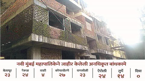 नवी मुंबई महापालिकेच्या हद्दीत सध्यस्थितीत मोठ्या प्रमाणात अनधिकृत बांधकामे सुरू आहेत. असे असतानाही यादीत बेलापूर २३, नेरूळ २४, वाशी ४, कोपरखैरणे २७, घणसोली २३, ऐरोली २४, तुर्भे १४; तर दिघा येथे एकही अनधिकृत बांधकाम नसल्याचे प्रसिद्धिपत्रकात म्हटले आहे. दिघा परिसरात एकही अनधिकृत बांधकाम नाही, असे स्पष्ट म्हटल्याने आश्चर्य व्यक्त करण्यात येत आहे. प्रसिद्ध करण्यात आलेली ही यादी सप्टेंबर ते डिसेंबर २०१९ या कालावधीतील इमारतींची आहे, परंतु याच कालावधीत नवी मुंबई परिसरात शेकडो इमारती कोणतीही परवानगी न घेता उभ्या राहिल्या असल्याचे वास्तव आहे.