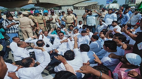 भिवंडी : मुंबई उच्च न्यायालयाच्या निर्देशाने एमएमआरडीए आणि महसूल विभाग या सरकारी यंत्रणांनी तालुक्यातील 52 गावांतील वडिलोपार्जित राहती घरे व गोदामे (वाणिज्य) यांचे बांधकाम बेकायदेशीर ठरवून त्यावर तोडक कारवाई सुरू केली आहे. ही कारवाई अन्यायकारक असून स्थानिक भूमिपुत्रांना देशोधडीला लावणारी आहे. त्यामुळे या कारवाईला थांबवण्यासाठी "नागरी हक्क बचाव समिती'च्या वतीने आज शेकडो ग्रामस्थांनी मुंबई-नाशिक महामार्गावरील भिवंडीजवळील रांजणोली गाव चौकात रास्ता रोको आंदोलन केले. या वेळी वाहतूक रोखून धरणाऱ्या भाजप, शिवसेना व श्रमजीवी संघटनेच्या पदाधिकाऱ्यांसह ग्रामस्थांना पोलिसांनी ताब्यात घेऊन जामिनावर सोडून दिले.