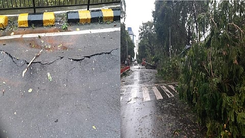 पेडर रोड हा मुंबईतला प्रसिद्ध रस्ता आहे. झाडं आणि मातीचा ढिगारा रस्त्यावरमध्येच येऊन पडला. त्यामुळे हा रस्ता वाहतुकीसाठी बंद करण्यात आला. यात मुसळधार पावसामुळे रस्त्याला तडे गेल्याचंही पाहायला मिळालं. मुंबई महापालिका क्षेत्रात जोरदार वाऱ्यांच्या तडाख्याने १४१ ठिकाणी झाडे उन्मळून पडली. ही झाडे महापालिकेच्या उद्यान विभागाद्वारे तात्काळ हटविण्यात आली आहे.