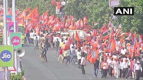 raj thackerays chale jao rally starts from hindu gymkhana now heading towards aazad midan