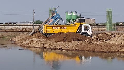 नवी मुंबई : भेंडखळनंतर नवघर येथील पाणथळ जागेतही दिवसाढवळ्या भराव सुरू आहे. हा भराव रेल्वेस्थानकाकरिता केला जात असल्याचे सांगितले जात असले तरी पर्यावरणप्रेमींनी त्याला विरोध दर्शवला आहे. पाणथळ ठिकाणी कोणत्याही प्रकारचा मानवी हस्तक्षेप कायद्याने गुन्हा असल्याचे माहीत असतानाही संबंधित प्रशासनामार्फत केला जाणारा अट्टहास चुकीचा असून, उरणला व पर्यायाने नवी मुंबईसाठीही धोकादायक ठरणार असल्याचे मत पर्यावरणप्रेमींनी व्यक्त केले.
