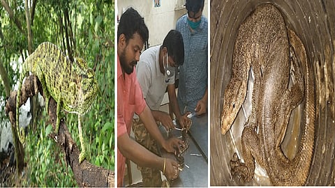 वडाळा : मुंबई उपनगरातील भांडुप आणि मुलुंड येथून दोन श्यामेलिऑन (रंग बदलणारा सरडा) तर, मिररोड व बोरीवलीतून घोरपड आणि तीन अजगर यांची बुधवारी (ता. 26) सुटका करण्यात आली. एसीएफ फाऊंडेशन आणि प्लांट एण्ड अॅनिमल वेलफेअर सोसायटीच्या स्वयंसेवकांनी याबाबत वनविभागाला माहिती देत या प्राण्यांना ठाण्यातील जंगलात सोडल्याची माहिती वन्यजीव रक्षक आणि एसीएफ पॉज-मुंबईचे संस्थापक सुनीष सुब्रमण्यन यांनी दिली.