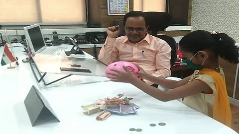 उल्हासनगर ः अभ्यास, वक्तृत्व आणि खेळात पारंगत असलेल्या आणि तेवढ्याच हळव्या मनाच्या उल्हासनगरमधील अवघ्या सहा वर्षीय विद्यार्थिनीने कोविडच्या लढ्यासाठी आपल्या पॉकेटमनीचे योगदान देऊन खारीचा वाटा उचलला आहे. आयुक्त सुधाकर देशमुख यांच्याकडे तिने आपला पॉकेटमनी सुपूर्द केला. विशेष म्हणजे, तिने आपली पिगी बॅंक देशमुख यांच्या दालनात उघडून त्यातील पै अन् पै मिळून पावणेतीन हजाराची रक्कम त्यांच्या हाती सोपवली. देशमुख यांनीही स्मित हास्याने तिचे कौतुक केले.