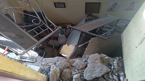नवी मुंबई : कोपरखैरणे सेक्टर-19 बी मधील सिल्वर सॅंड सोसायटी या इमारतीतील तिसऱ्या व दुसऱ्या मजल्यावरील बेडरुमचा स्लॅब पहिल्या मजल्यावरील बेडरुममध्ये कोसळून झालेल्या दुर्घटनेत चार जण गंभीर जखमी झाल्याची घटना मंगळवारी (ता.1) दुपारी घडली. अग्निशमन दलाच्या जवानांनी घटनास्थळी धाव घेऊन स्लॅबच्या ढिगाऱ्याखाली अडकुन पडलेल्या सर्व जखमींना वाशी येथील महापालिकेच्या रुग्णालयात दाखल केले. जखमींमध्ये एक गरोदर महिला असून, या महिलेची प्रकृती चिंताजनक असल्याचे रुग्णालयातील सुत्रांनी सांगितले.
