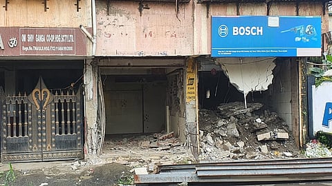 उल्हासनगर : प्रभाग समिती 3 मध्ये दीड वर्षांपूर्वी रिकामी करण्यात आलेल्या ओम शिवगंगा को.ऑप. हौसिंग सोसायटी या इमारतीच्या चौथ्या मजल्याचा स्लॅब तळमजल्यावरील दुकानावर कोसळला आहे. ही इमारत कोसळण्याची शक्यता असल्याने इमारतीसमोरील व्हीनस ते लालचक्की चौक हा वर्दळीचा रस्ता बंद करण्यात आला असून आजुबाजूचा परिसर देखील रिकामा करण्यात आला आहे. ही इमारत पाच मजल्यांची असून दीड वर्षांपूर्वी या इमारतीच्या चौथ्या मजल्याचा स्लॅब तिसऱ्या मजल्यावर कोसळला होता. त्यामुळे इमारतीला अतिधोकादायक घोषित करून पालिका प्रशासनाने 35 कुटुंबीयांना आणि पाच दुकानांना रिकामे करून इमारतीला सील केली होती.