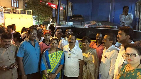 यावेळी महापौर विनिता राणे, जिल्हाप्रमुख गोपाळ लांडगे, उपजिल्हाप्रमुख सदानंद थरवळ, शहरप्रमुख राजेश मोरे, महिला संघटक कविता गावंड, विंदा भुस्कुटे, सहाय्यक पोलिस उपायुक्त रविंद्र वाडेकर, वपोनी विजयसिंह पवार इत्यादी मान्यवर उपस्थित होते. यावेळी विद्याधर विठ्ठल भुस्कुटे वयाच्या 67व्या वर्षी या प्रवासाला सुरुवात करीत आहेत. ही तिसरी पदभ्रमणयात्रा आहे. नागरिकरांकडून शुभेच्छा देत आहे असे महापौर विनिता राणे म्हणाल्या. डोंबिवलीच्या शिरपेचात तुरा खोवण्याचे कार्य करित आहे..लोकच यांच्याबद्दल पुस्तके लिहितील. शिवसेनेच्या महिलांच्या वतीने भुस्कुटे यांचे औक्षण करून शाल व श्रीफळ देउन भुस्कुटे यांचा सत्कार करण्यात आला. `जय हिंद`, `भारत माता की जय` अश्या घोषणां देत ढोलताशाच्या गजरात वाजत गाजत डॉ. बाबासाहेब आंबेडकर यांच्या पुतळ्यास पुष्पहार अर्पण करुन पदभ्रमणयात्रेस मोठ्या उत्साहात सुरुवात केली. कार्यक्रमाचे सुत्रसंचालन परिवहन सदस्य संतोष चव्हाण यांनी केले.