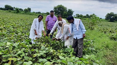 देगलूर गेल्या चार दिवसांपासून सुरू असलेल्या पावसाने नदी नाले तुडुंब भरले असून शेतीचे प्रचंड नुकसान झाले आहे. उडीद हातचे गेल्यात जमा आहे. नुकसानग्रस्त शेतीची पाहणी आमदार रावसाहेब अंतापूरकर यांनी सोमवार (ता.१७) रोजी करून यंत्रणेला पंचनामा करण्याचे आदेशही दिले आहेत.