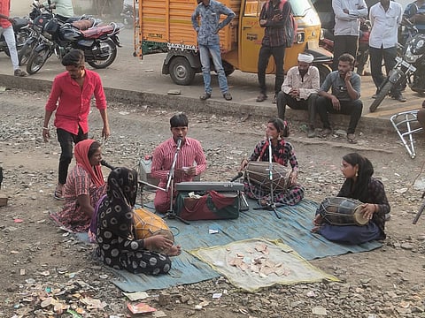 अशी ही निवडणुकीची धामधूम एकीकडे चालू असतांना अशा निवडणुकांचे कसलेच देणेघेणे नसलेल्या आणि स्वतः बरोबरच कुटुंबाच्या दैनंदिन उदरनिर्वाह साठी, पोटाची खळगी भरण्यासाठी घर- दार, गाव- शिवार सोडून मुलांबळासह या गावावरुन त्या गावाला आपलं पाल उचलत जनमानसांच मनोरंजन करण्यासाठी विविध गाणे, पोवाडे, भक्तिगीते म्हणून प्रेक्षकातून मिळेल ती मदत घेऊन दररोज चा दिवस कसा लोटेल यासाठी धडपड करणारे कुटुंब अनवाणी फिरताना दिसून येत असल्याने कोणाला निवडणुकीचं येड तर कोणाला पोट भरण्याचं कोड अशीच परिस्थिती पाहायला मिळत.