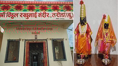 मुखामध्ये हरीचे नाम नसेल तर अपशब्द बाहेर पडतात. ज्यामुळे स्वतःसोबतच इतरांचीही मने दुःखी होते. हरीच्या नामाशिवाय कोणीही दुःखातून सोडवू शकत नाही. त्यामुळे नियमित हरीचे नामस्मरण व्हावे असे संत एकनाथ महाराजांनी (Sant Eknath Maharaj) या अभंगातून समाजाला उपदेश केला. त्याला अनुसरून तरोडा (बु) (Nanded) येथे विठोबा रुक्माईचे मंदिर गजानन रावसाहेब आणि सचिन संजयराव देशमुख यांनी आजी-आजोबांच्या स्मरणार्थ उभारले आहे. हजारो वर्षांपूर्वी संतांनी लिहून ठेवलेल्या अभंगाचा (Abhang) प्रत्यय आपल्या जीवनात ठायीठायी येत आहे. त्यामुळे अनेक कुटुंबीय आज वारकरी (Warkari) संप्रदायाशी जुळलेले आहेत. वडिलोपार्जित सुरु असलेली ही परंपरा नवीन पिढीही पुढे नेटाने नेताना दिसत आहे. तरोडा येथील गजानन रावसाहेब आणि सचिन संजयराव देशमुख यांनी आजोबांची वारकरी संप्रदायाची परंपरा पुढे अखंडित सुरु राहावी म्हणून आजी-आजोबांच्या स्मरणार्थ विठ्ठल-रुक्मिणी मंदिराची उभारणी केली. (family built vitthal rukhmai temple in memory of grand parents in nanded district glp88)