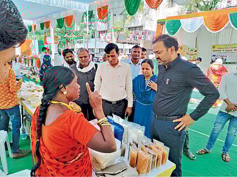 ‘विकेल ते पिकेल’ या अभियानातर्गंत येथील जिल्हाधिकारी परिसरात आयोजित करण्यात आलेल्या धान्य महोत्सवात शेतीपुरक उद्योगातून बचतगट आणि स्वव्यवसायातून महिलांचा सहभाग लक्षणीय आहे. जिल्हाधिकारी डॉ. विपीन इटनकर यांनी प्रत्येक स्टॉलला सोमवारी भेट देवून महिलांना प्रोत्साहन दिले. सोमवारी (ता. २१) एका दिवसात जवळपास ११० शेतकरी व शेतकरी गट यांच्यामार्फत सुमारे अकरा लाख रुपयांच्या शेतमालाची विक्री झाली आहे. तसेच जवळपास पाच लाखांच्या शेतमालाची अॅडव्हान्स बुकींग झाली आहे. नैसर्गिक शेतीमधील गावरान लसुण, सेंद्रिय गुळ, धर्माबादची टाळकी ज्वारी, लोहा तालुक्यातील लोकवन गहू, देगलूरचे लाकडी घाण्याचे करडई तेल, कामठा (ता. अर्धापूर) येथील सेंद्रीय टरबुज याला मागणी होती.