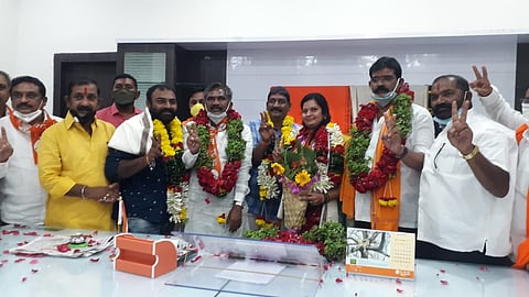 कुंडलवाडी (जिल्हा नांदेड) : येथील नगरपालिकेच्या नगराध्यक्ष पदाच्या पोटनिवडणुकीत नगरपालिकेवरील भाजपाकडील सत्ता खेचून महाविकास आघाडीचा दणदणित विजय झाला. त्यात शिवसेनेच्या सुरेखा जिठ्ठावार नगराध्यक्ष पदी विराजमान झाल्या आहेत.