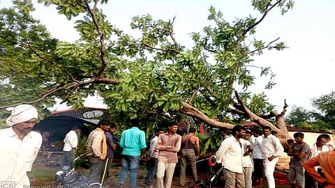 शुक्रवारी (ता.१८) रात्री मेघगर्जनेसह पडलेल्या पावसात खानापूर येथील हेमाडपंथी महादेवाच्या मंदिरावरील कळसावर वीज कोसळून मंदिराचे मोठ्या प्रमाणात नुकसान झाले आहे. कावळगाव येथील धनराज लगडे यांच्या घरावर झाड कोसळल्याने त्यांचा संसार उघड्यावर आला आहे. या पावसाने भोकसखेडा येथील नवीन व जुन्या वसाहतीतून जाणाऱ्या नाल्याला मोठ्याप्रमाणात पाणी आल्याने दिवसभर गावकऱ्यांचा संपर्क तुटला होता, तर अनेकांच्या घरात पाणीही घुसल्याने नागरिकांची मोठी धावपळ उडाली.