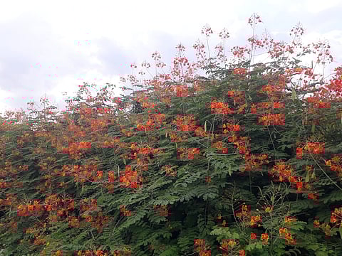 घोगरी (जिल्हा नांदेड) : प्रतिवर्षी नवरात्र उत्सवाची चाहूल लागताच, डोळ्याला भुरळ घालणारी ‘गुलतुर वृक्ष’ केसरी रंगाच्या फुलांची उधळण करीत अंगोपांगी बहरत असल्याने घोगरी ( ता. हदगाव) या छोट्याशा गावाने जणू केसरी शालू पांघरलेल्याचे चित्र आहे. यावरून या आदिशक्तीचा (स्त्री शक्तीचा) जागर घालण्यास निसर्ग ही मागे नसल्याचे पहावयास मिळत आहे.