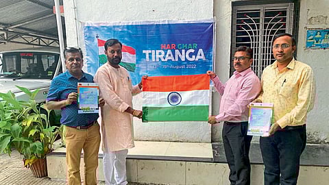 नांदेड : भारतीय स्वातंत्र्याचा अमृत महोत्सवानिमित्त ‘नांदेड के हर घर तिरंगा ’ हा उपक्रम भाजपा महानगर नांदेड तसेच लायन्स क्लब नांदेड सेंट्रल, लायन्स क्लब नांदेड अन्नपूर्णाच्या वतीने राबविण्यात येणार आहे. यामध्ये दोन हजार २२ तिरंगे ध्वज मोफत वितरित करण्यात येणार असल्याची माहिती संयोजक ॲड. दिलीप ठाकूर यांनी दिली. नांदेडचे खासदार प्रताप पाटील चिखलीकर, भाजपा जिल्हाध्यक्ष प्रवीण साले, लायन्स बहुप्रांतीय अध्यक्ष दिलीप मोदी, लायन्स प्रांतपाल पुरुषोत्तम जयपुरिया यांच्या मार्गदर्शनाखाली शहरात घरोघरी जाऊन तिरंगे झेंडे वितरित होणार आहेत.