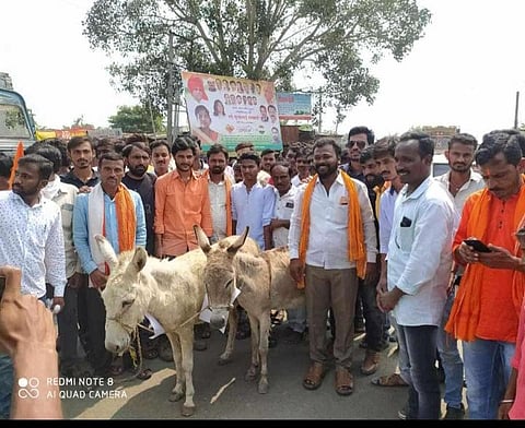 बारड (जिल्हा नांदेड) - सकल मराठा आरक्षण युवक समितीने जिल्ह्यातील लोकप्रतिनिधींना आरक्षण विषयक सरकारची भूमिका मांडण्यासाठी पाठविलेले खुल्या चर्चेचे निमंत्रण धुडकावल्याने खासदार-आमदार यांचा निषेध व्यक्त करुन दोन गाढवांच्या गळ्यात निवेदनाच्या प्रतीचा फलक लटकून सुप्रीम कोर्टाच्या स्थगिती निर्णया विरोधात रास्ता रोको करण्यात आला असून आंदोलन तीव्र करण्याचा इशारा यावेळी देण्यात आला आहे.
